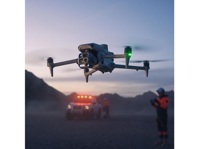 该机型配备DJI RC Plus 2行业版遥控器,支持25公里超远图传,6741mAh锂电池实现49分钟续航,抗风等级达12m/s,可适应-20℃至50℃极端环境。内置AI目标检测模型,支持车辆/船只识别,夜间通过100米近红外补光灯与全彩夜视模式穿透烟雾定位受困人员。电力巡检中可自动标注导线间距,应急场景下通过114dB喊话器与4.3lux探照灯实现夜间执法取证,成为电力运维与灾害救援的高效空中工具。