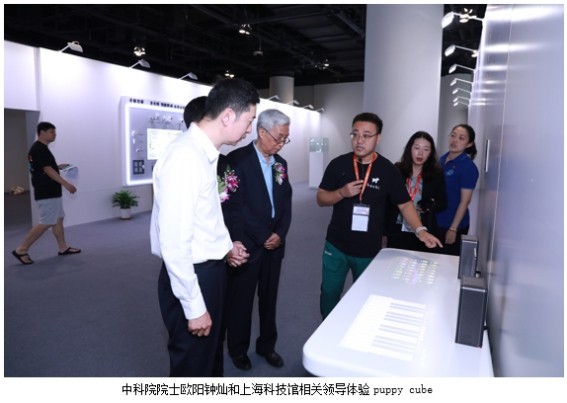 为期两周的活动时间里,puppy cube始终是上海科技馆的“流量主”,就连中科院院士欧阳钟灿、中国电子视像行业协会副秘书长彭健锋和上海科技馆相关领导也来到展台前体验了一把。